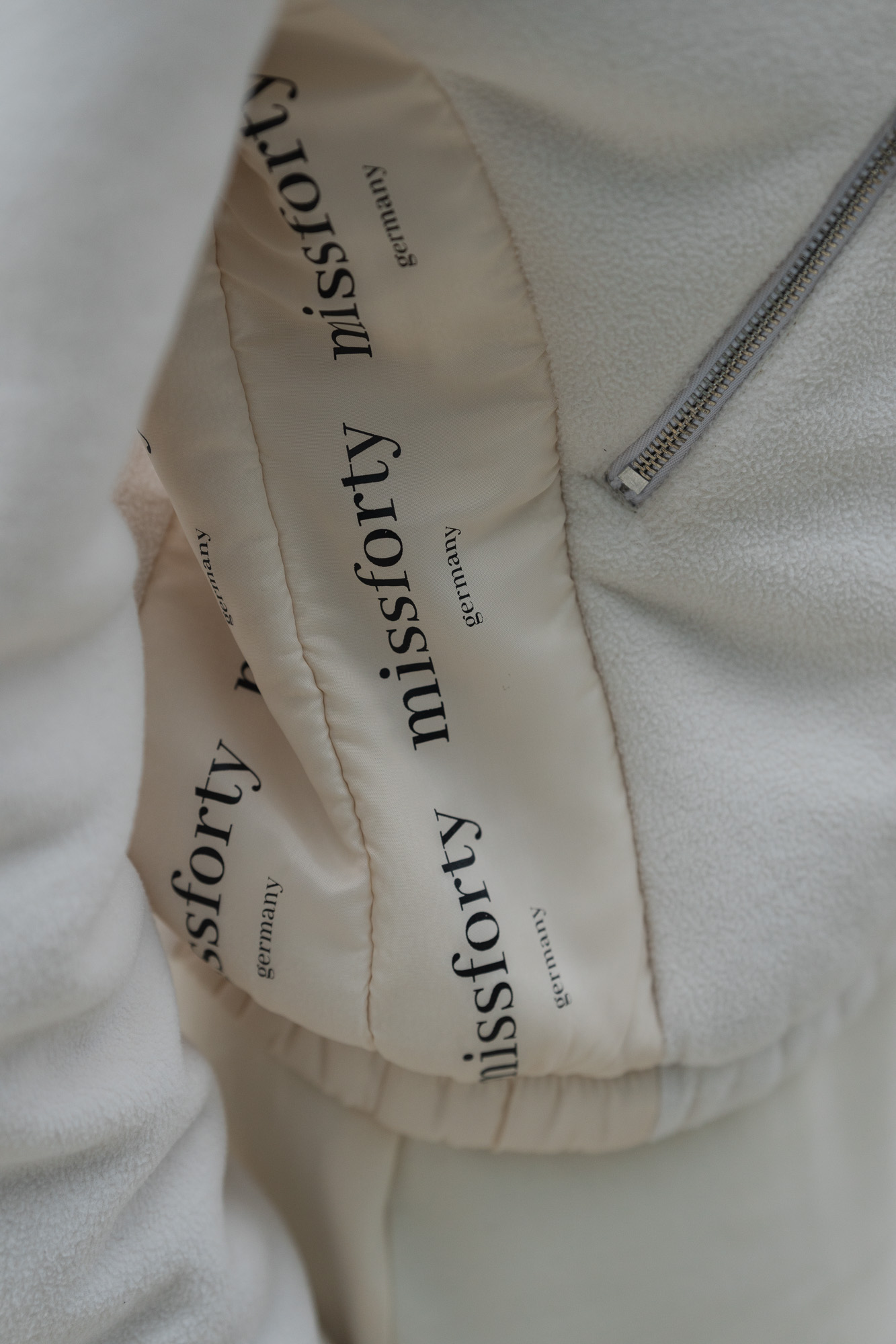 Ein besonderes Highlight dieser Teddyjacke sind die hochwertigen Satinborten mit dem MissForty Germany Logo an der Seite, die der Jacke eine exklusive Note verleihen.