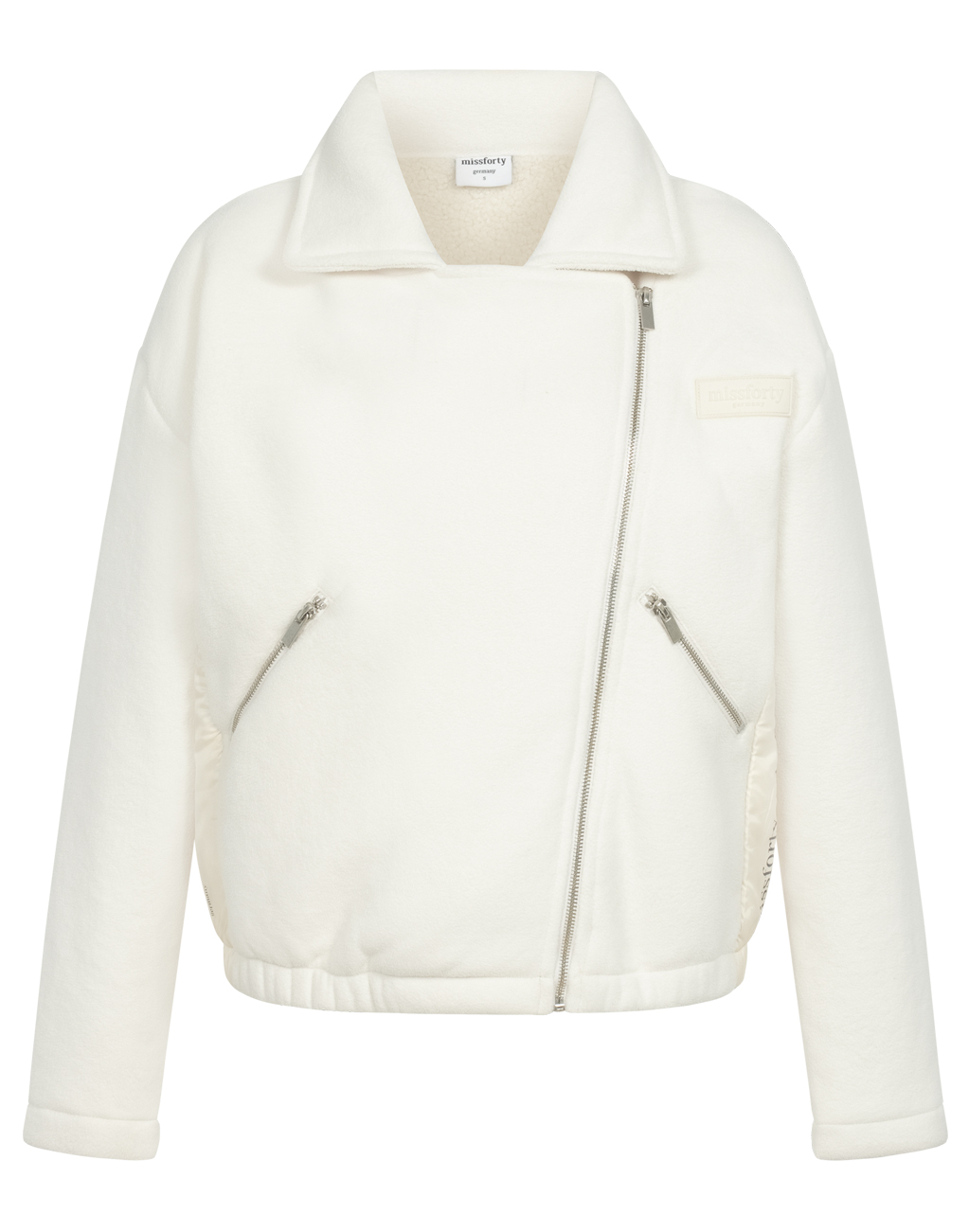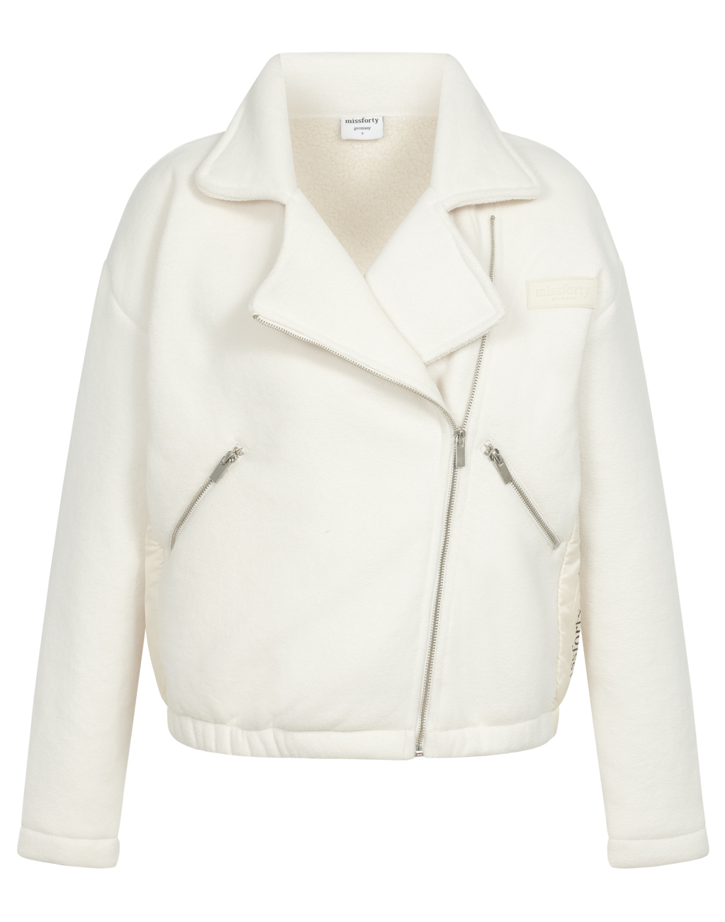 Die Jacke ist in einem edlen Offwhite gehalten und lässt sich daher vielseitig kombinieren – egal, ob zu Jeans, Leggings oder Röcken. Der asymmetrische Reißverschluss vorne sorgt für den angesagten Biker-Look und verleiht der Jacke das gewisse Extra. Seitliche Eingriffstaschen bieten Platz für kleine Essentials oder zum Aufwärmen der Hände.
